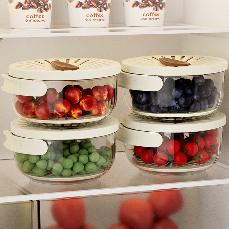 Stackable design saves fridge space and keeps fruits fresh.