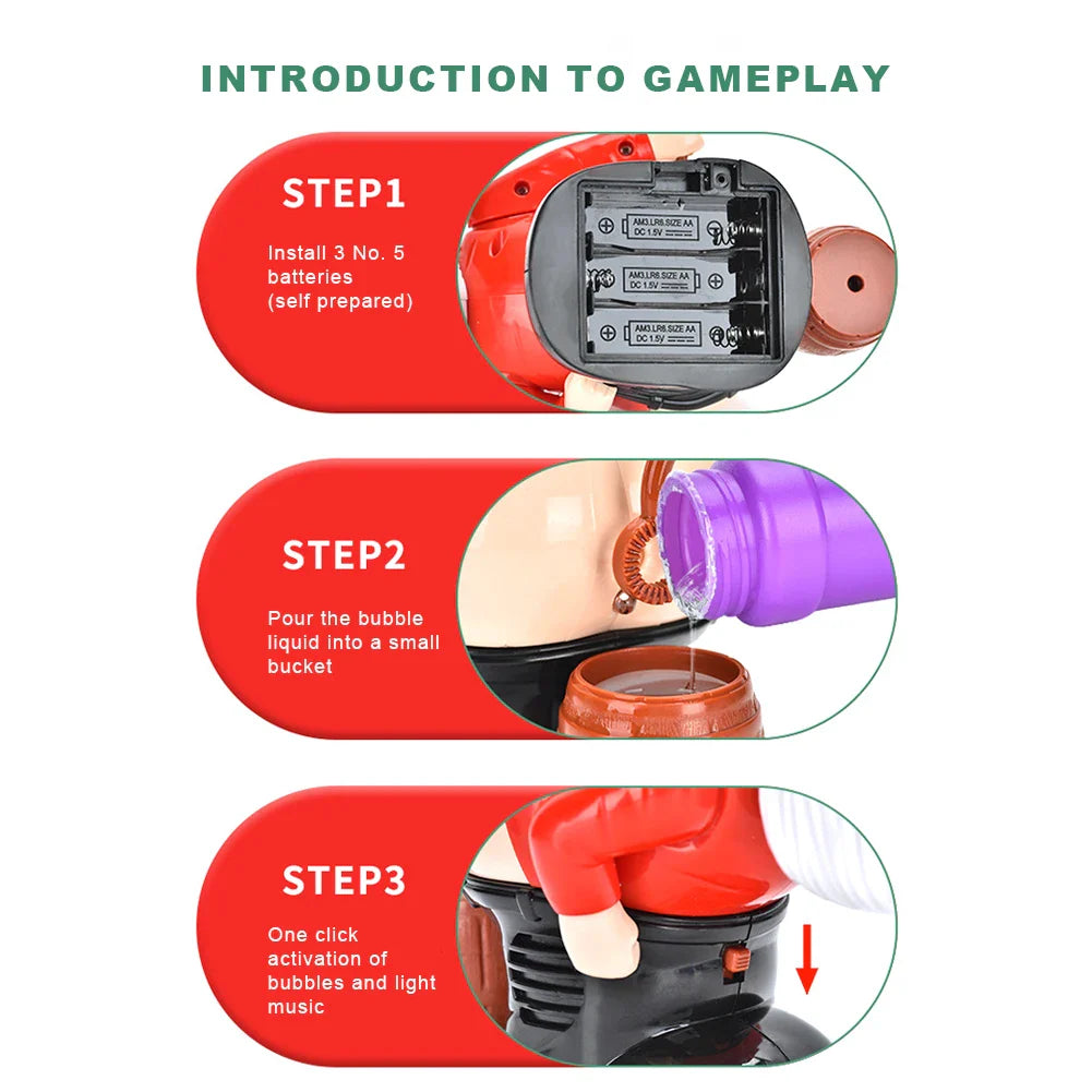 FUNNY CHRISTMAS GIFT! This delightful bubble blower will liven up any holiday gathering with cheerful music and bursts of laughter as it releases bubbles from Santa's backside. Squeeze the bubbles for realistic fart sounds that will have everyone cracking up!